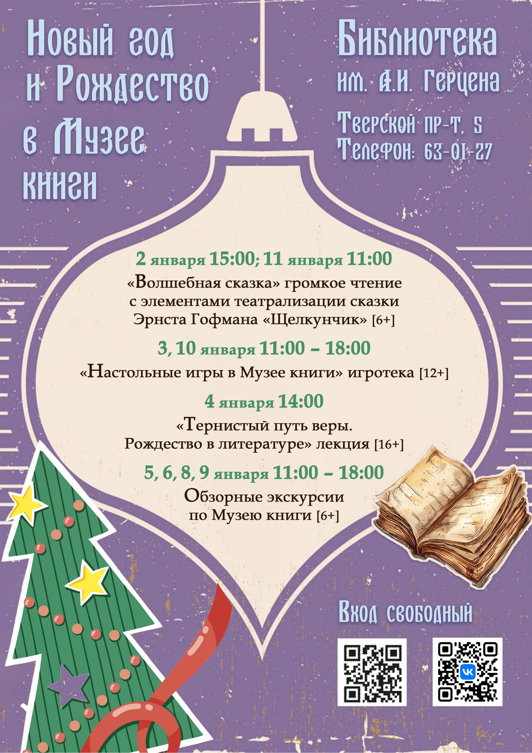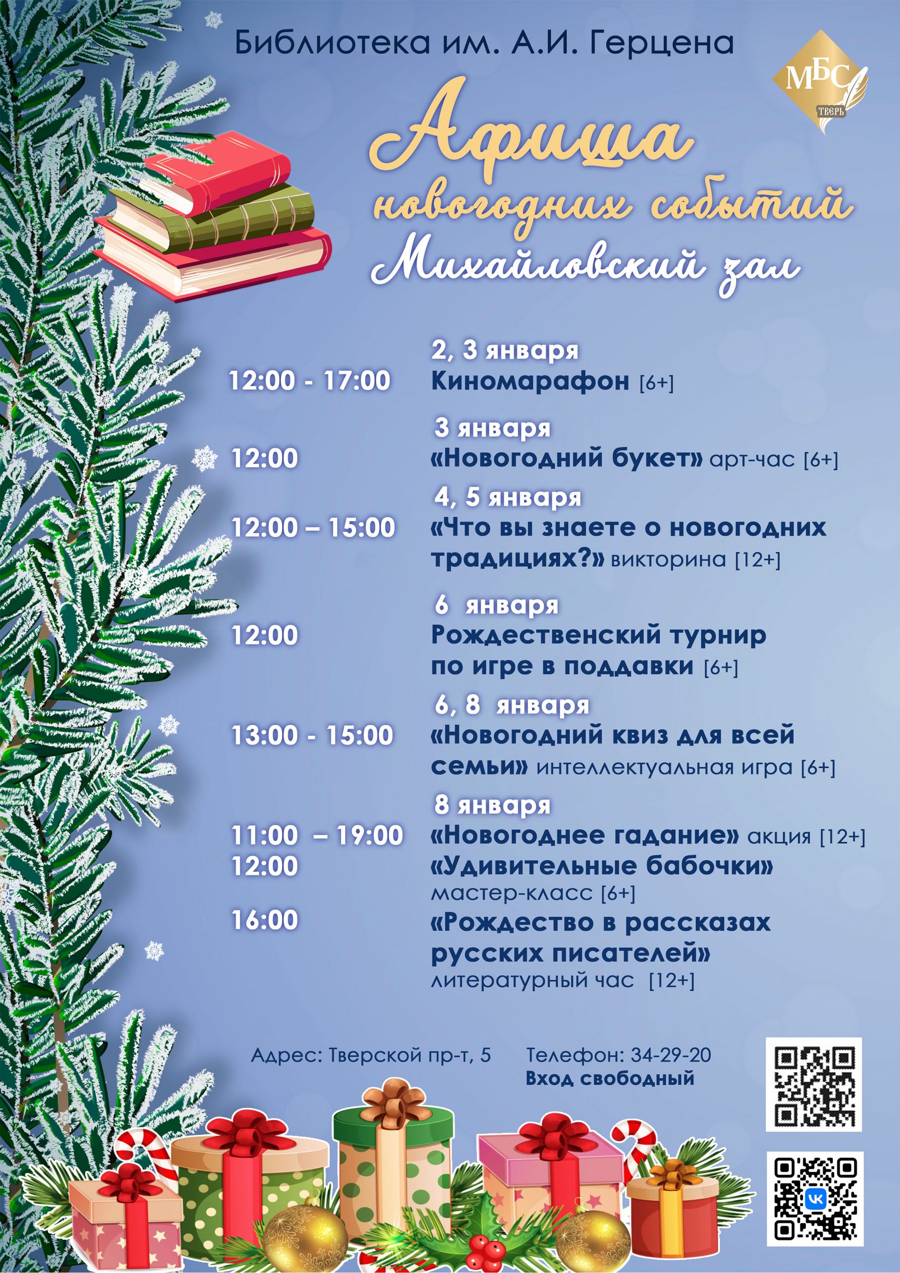Режим работы Муниципальной библиотечной системы города Твери (29.12.2025 — 12.01.2026)