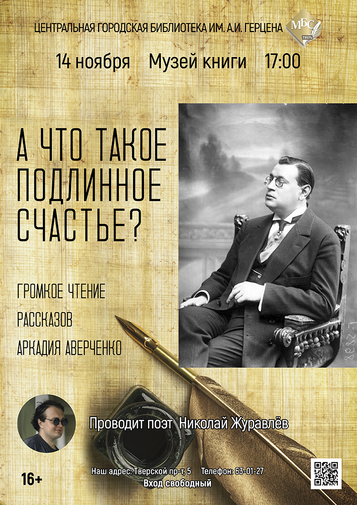 Если вам знакомо имя Аркадия Аверченко, то вы наверняка в детстве читали рассказы про индийскую хитрость и экзаменационную задачу. Часто их публикуют в сборниках вместе с произведениями Зощенко и Тэффи. На фоне этих знаменитых авторов имя Аверченко немного теряется. Но мы решили исправить эту оплошность и пригласить всех желающих на громкое чтение сатирических рассказов этого выдающегося по-своему писателя!