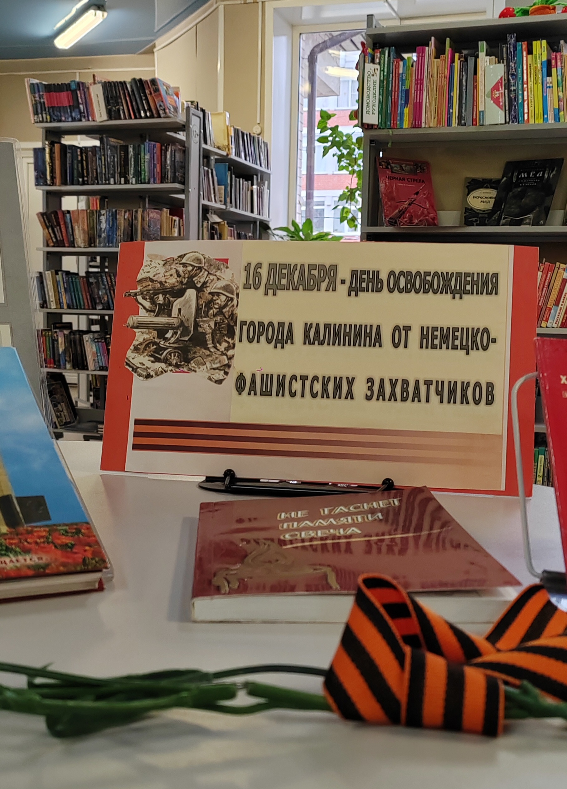 В Детском зале для юных читателей и их родителей представлена книжная выставка «В том далёком декабре…», приуроченная ко Дню освобождения города Калинина от немецко-фашистских захватчиков, который ежегодно отмечается 16 декабря. На выставке вас ждут книги «Они защитили нас» В.Н. Митрофанова, «Ярче легенды» П.А. Иванова и С.М. Флигельмана, «На правом фланге Московской битвы» М.Я. Майстровского, «Не гаснет памяти свеча» Н.Я. Комова и другие. Эти издания расскажут о том, что наш город стал первым в Советском Союзе областным центром, освобожденным от немецко-фашистских захватчиков после двух месяцев оккупации. Также вы сможете посмотреть фотоальбом, в котором размещены снимки с именами воинов Красной армии, подпольщиков, разведчиков, партизан и других граждан, участвовавших в обороне, освобождении и восстановлении города Калинина. Приглашаем всех на выставку! ________________________ Где: Центральная городская библиотека им. А.И. Герцена, Детский зал/ Тверской пр-т,5.