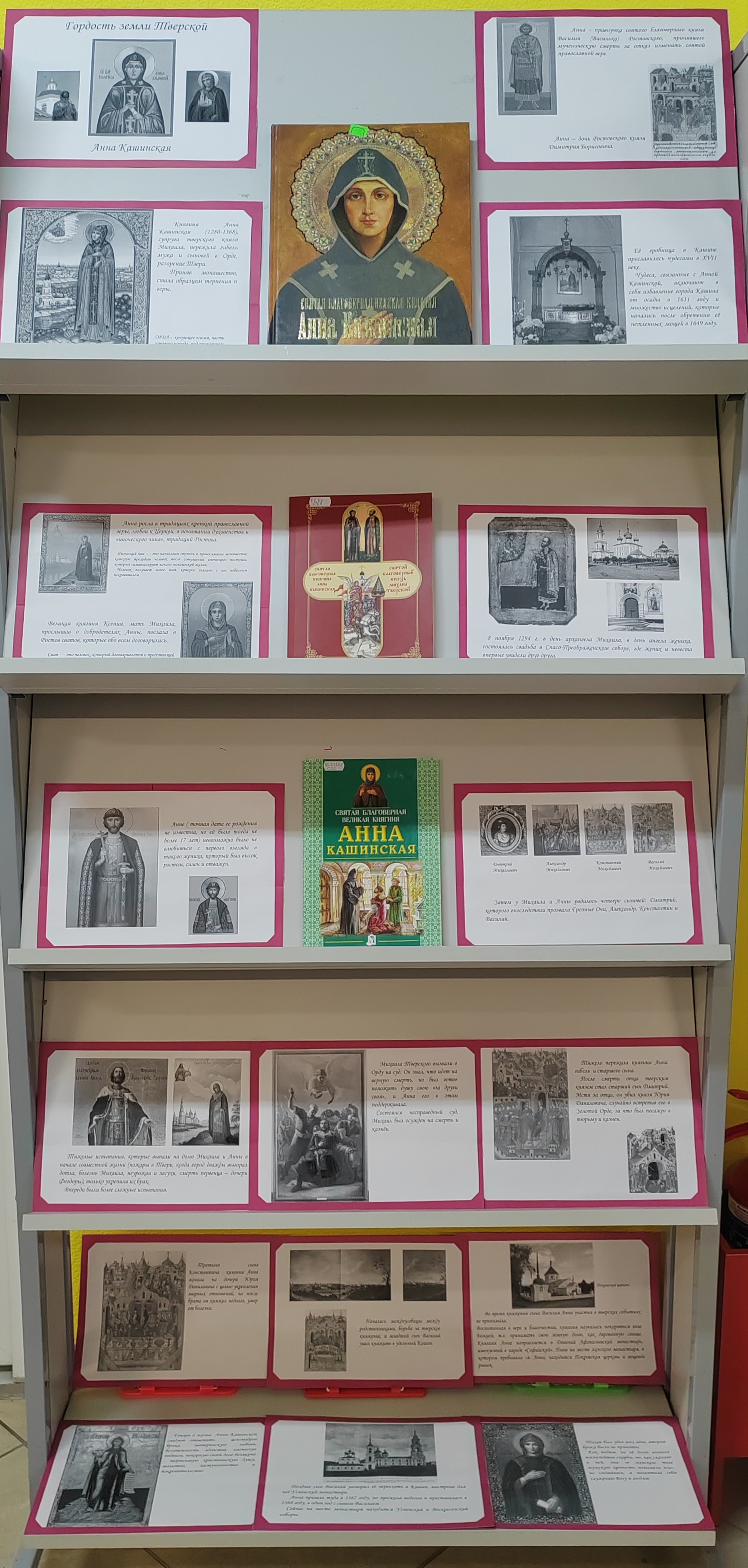 В Детском зале для всех желающих представлена книжно-иллюстративная выставка «Гордость земли Тверской. Анна Кашинская», посвящённая святой благоверной княгине, жене Михаила Ярославича Тверского.