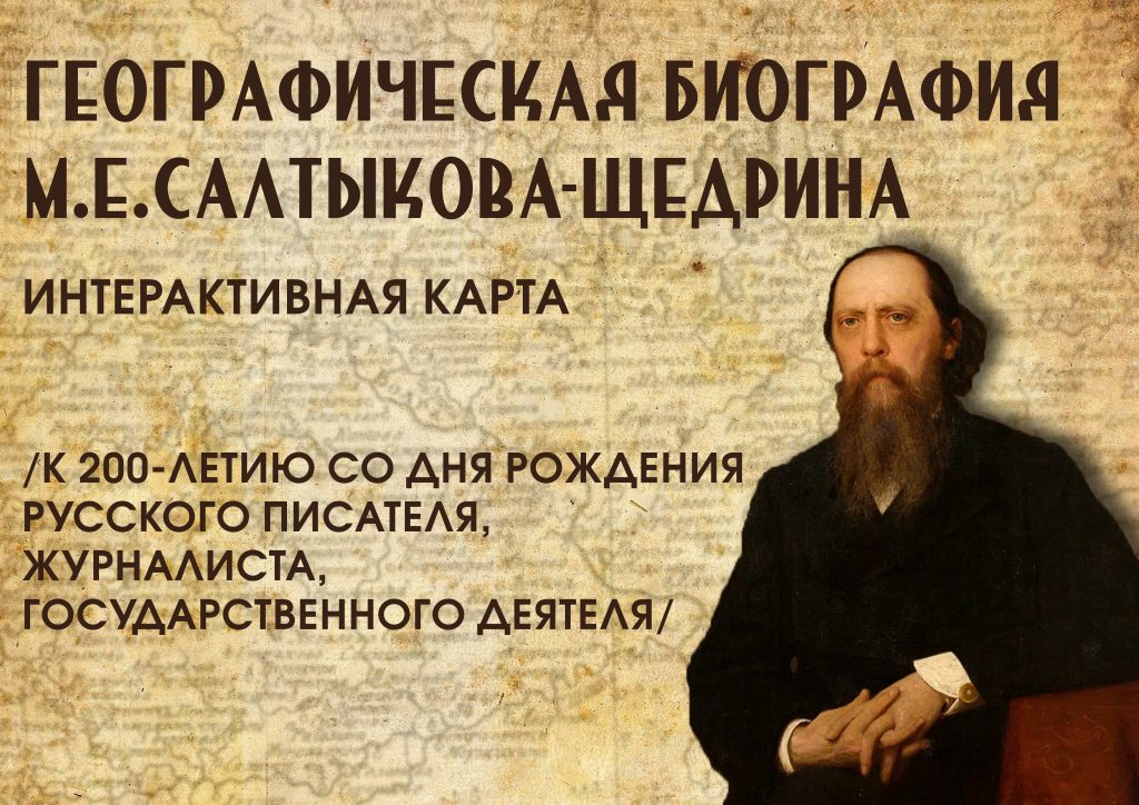 Предлагаем вашему вниманию интерактивную карту «Географическая биография Михаила Евграфовича Салтыкова-Щедрина», которая даст вам возможность познакомиться с жизнью и творчеством этого неординарного человека.