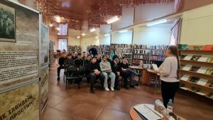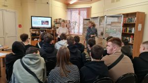 Слушатели узнали историю завода, который был основан в мае 1930 года. Самый тяжёлый период работы пришёлся на годы Великой Отечественной войны. В первые дни оккупации завод был разрушен. Несколько снарядов разорвались прямо на его территории, уничтожив несколько печей! Вскоре на заводе начался пожар…. 16 декабря 1941 года Калинин был освобождён. Уже на следующий день десятки тружеников завода приступили к расчистке его территории от завалов. Рабочие восстановили проводку, электроснабжение и приступили к строительству разрушенных печей. Восстановительные работы велись круглосуточно, а мороз был под тридцать градусов! Зима сорок первого выдалась лютой… Завод пришлось отстраивать фактически заново. На ремонтных работах трудились женщины и дети, ведь большая часть мужчин ушла на фронт. Уже к концу декабря 1941 года разрушенный фашистами завод приобрёл очертания довоенного предприятия. А ровно через месяц после освобождения Калинина (16 января 1942 года) наши труженики начали выпекать хлеб, большую часть которого сразу отправляли на фронт. Хлеб Войны… Это словосочетание и сейчас часто встречается в учебниках истории.