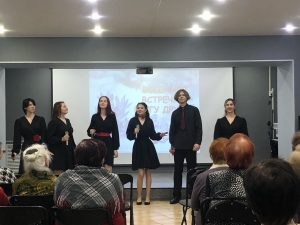 Студенты Тверского колледжа культуры им. Н.А. Львова подготовили яркий творческий подарок. В их исполнении прозвучали популярные народные и эстрадные песни, также воспитанники учебного заведения блеснули хореографическим искусством. Гости Герценки тепло встречали артистов, подпевали им и поблагодарили их за выступление дружными аплодисментами. Сотрудничество Центральной городской библиотеки им. А.И. Герцена и областного Совета ветеранов будет продолжено.