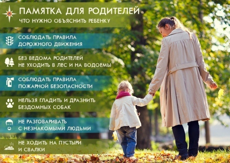 - научите ребенка осторожности на дороге, расскажите ему о правилах личной безопасности. Разъясните, что нельзя гладить бездомных животных и разговаривать с незнакомыми людьми;