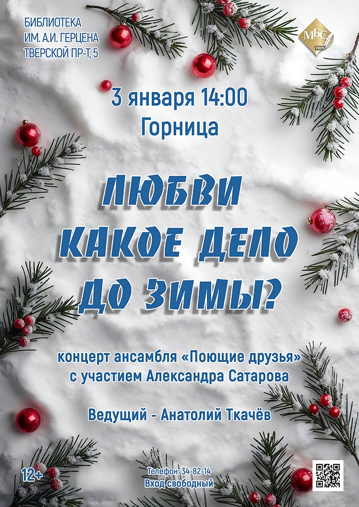 Где: Центральная городская библиотека им. А.И. Герцена, Горница / Тверской пр-т, 5.