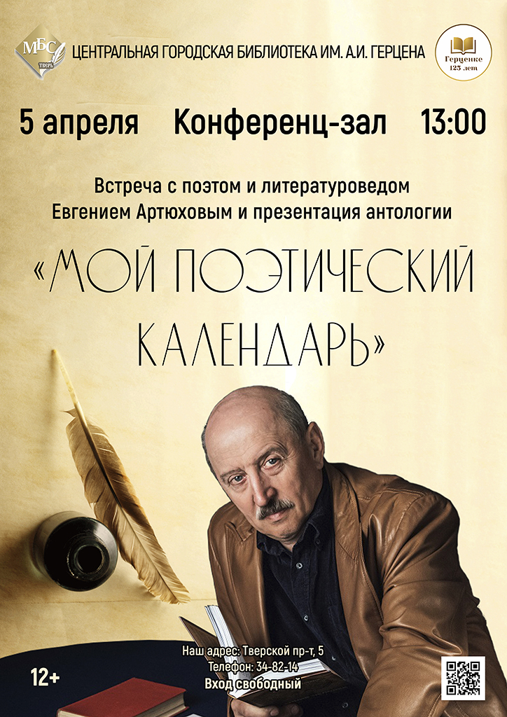 Лауреат нескольких престижных литературных премий, автор более десятка поэтических книг, сборников публицистики и литературоведения Евгений Артюхов представит вашему вниманию антологию «Мой поэтический календарь».