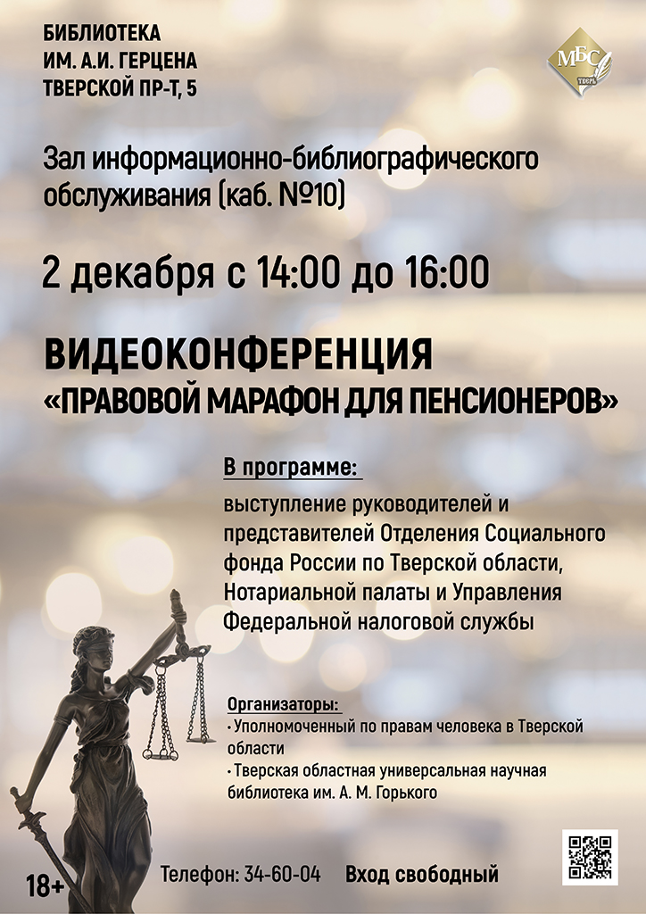 Дорогие читатели! 2 декабря состоится видеоконференция «Правовой марафон для пенсионеров».