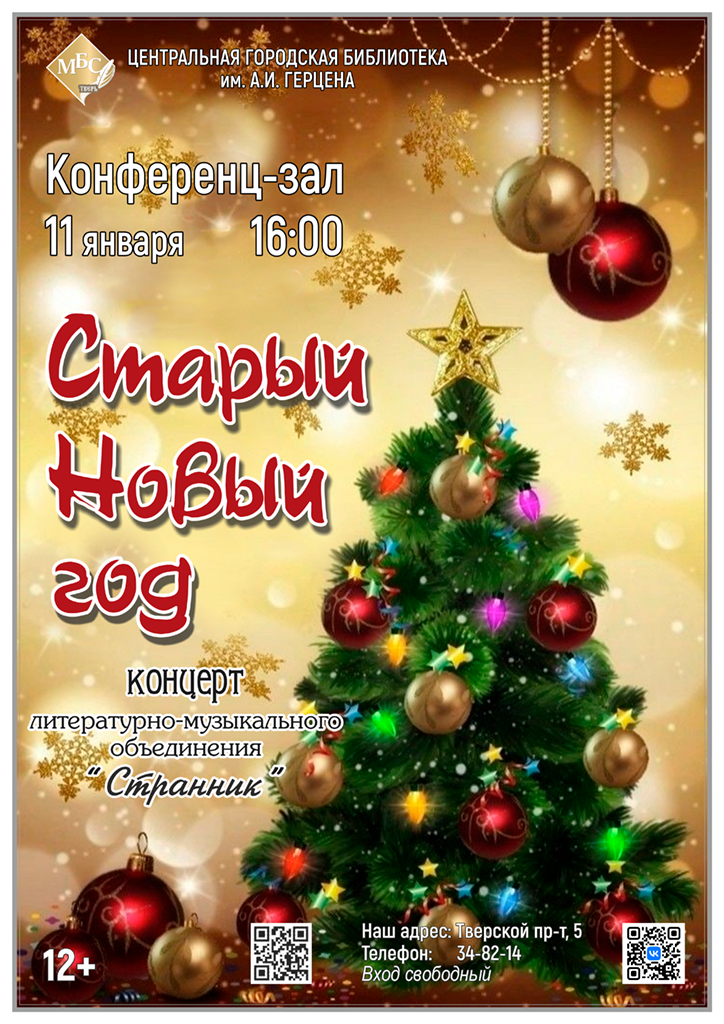 «Старый Новый год», который представят участники литературно-музыкального объединения «Странник». Яркие номера в исполнении талантливых артистов подарят зрителям положительные эмоции и отличное настроение в новогодние праздники.