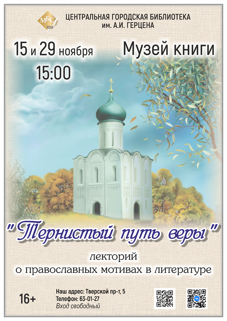 Уважаемые читатели Мы приглашаем вас в Музей книги на цикл лекций «Тернистый путь веры» о православных мотивах в русской и зарубежной литературе.