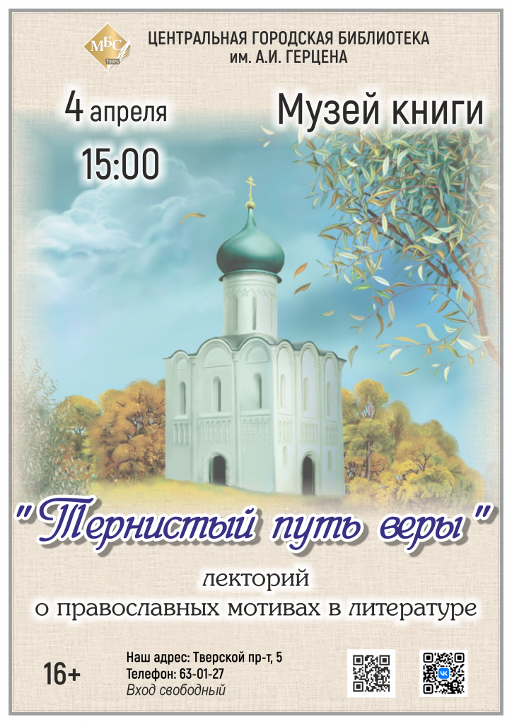 Мы приглашаем всех желающих в Музей книги на цикл лекций «Тернистый путь веры» о православных мотивах в русской и зарубежной литературе. Приходите — будет интересно!