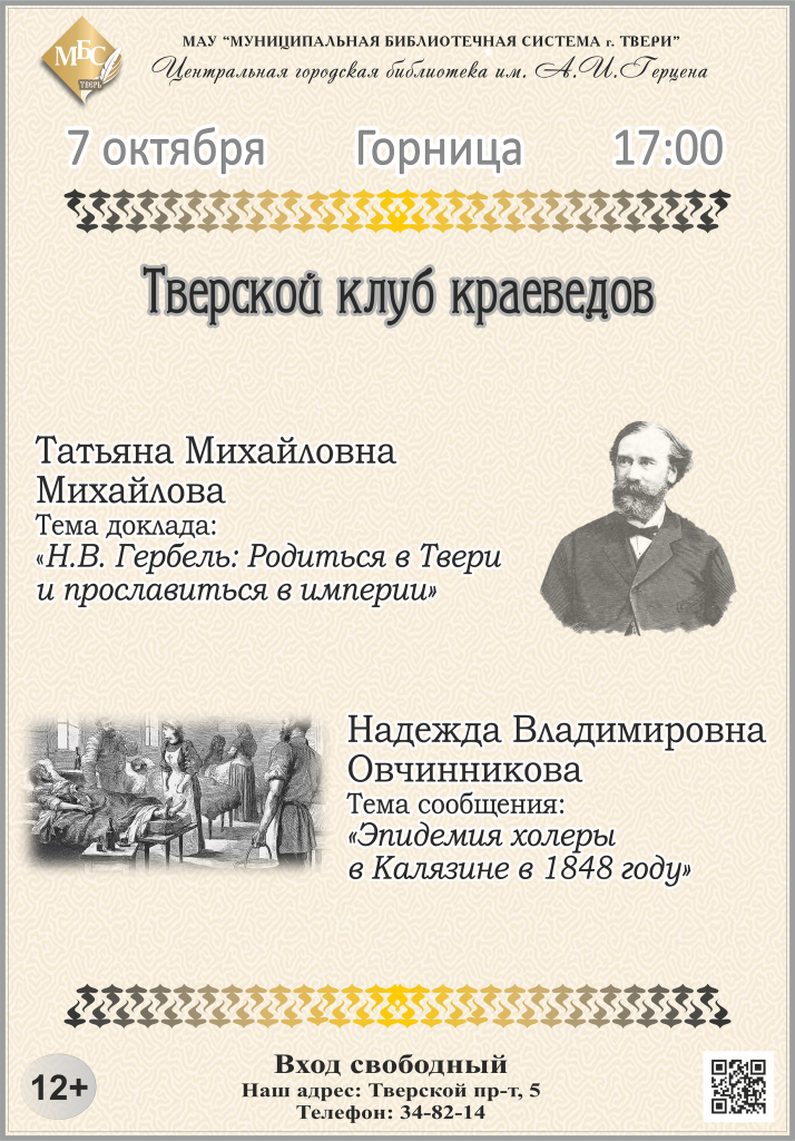 Где: Центральная городская библиотека им. А.И. Герцена, Горница / Тверской пр-т, 5.
