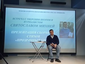 Сегодня в рамках Недели тверской книги в Центральной библиотеке им. В.Я. Шишкова (Бежецк) состоялась презентация поэтического сборника «Прозрачный брод» поэта Святослава Михни. Встреча прошла в исключительно теплой атмосфере.