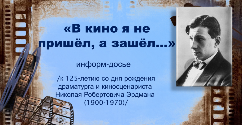 Предлагаем вашему вниманию информ-досье «В кино я не пришёл, а зашёл…», посвященное трагической судьбе и творчеству Н.Р. Эрдмана.
