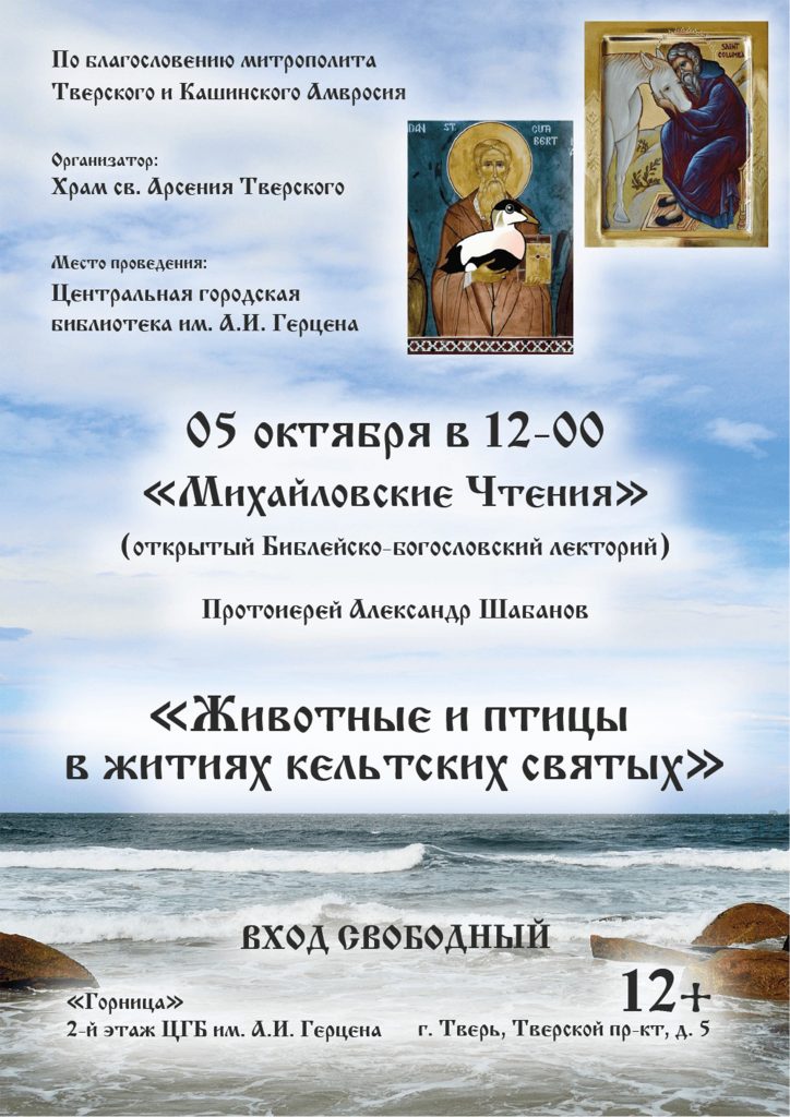 Друзья, приглашаем вас в Герценку на лекцию «Животные и птицы в житиях кельтских святых» в рамках открытого Библейско-богословского лектория «Михайловские чтения».