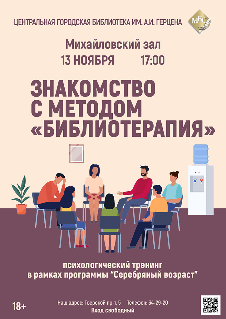 Друзья, ждём вас на психологическом тренинге «Знакомство с методом «Библиотерапия»» в рамках программы «Серебряный возраст».
