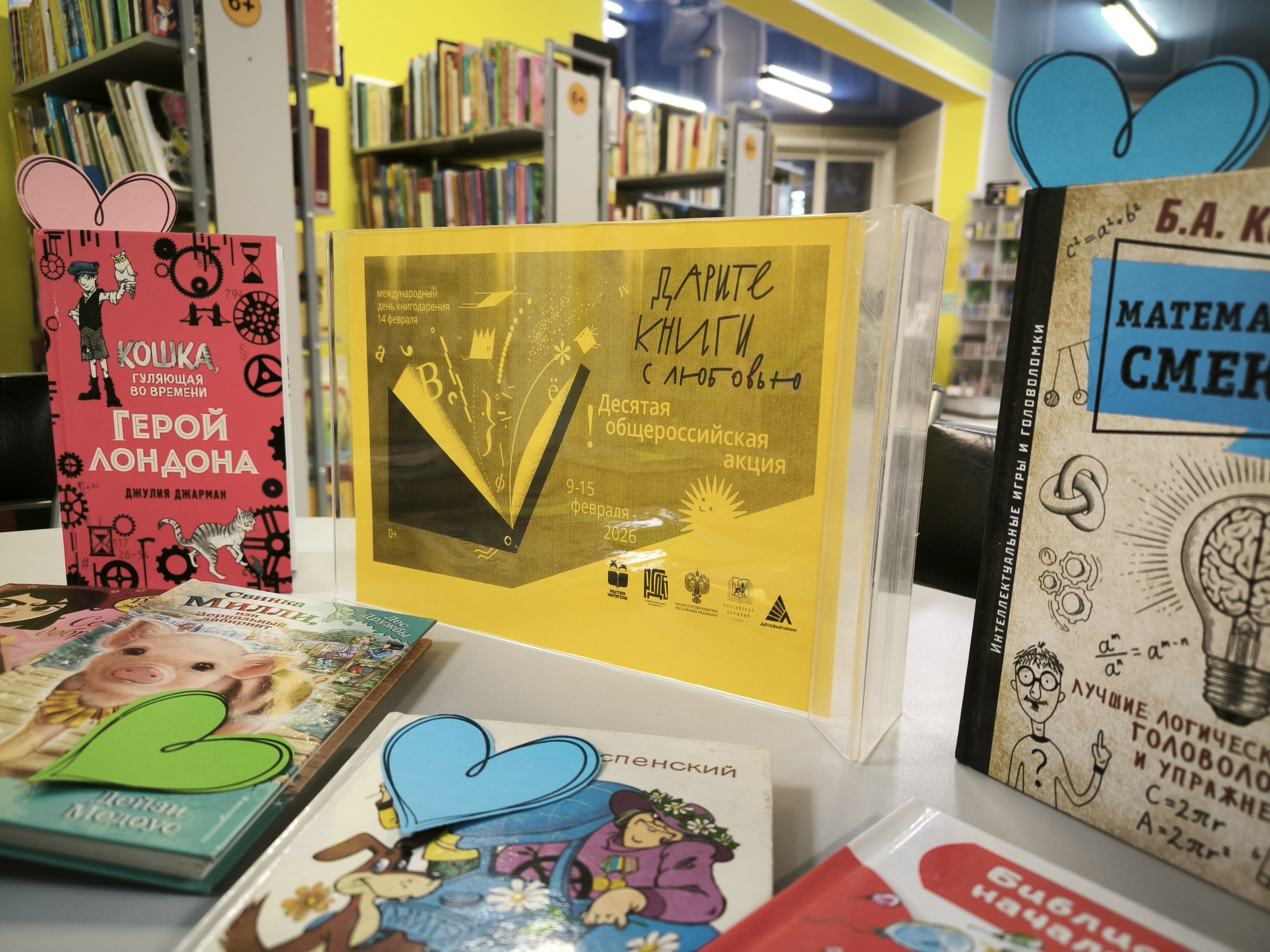 С 9 по 15 февраля 2026 года прошла десятая общероссийская акция «Дарите книги с любовью». Инициаторами акции выступают – Российская государственная детская библиотека и Ассоциация «Растим читателя». Традиционно 14 февраля в Международный день книгодарения Детский зал порадовал ребят разнообразными книжными выставками и, конечно, подарками – интересными детскими книгами. Этот день стал для наших читателей настоящим праздником любви к книге. Мы дарим детям радость! Дарим книги с любовью!