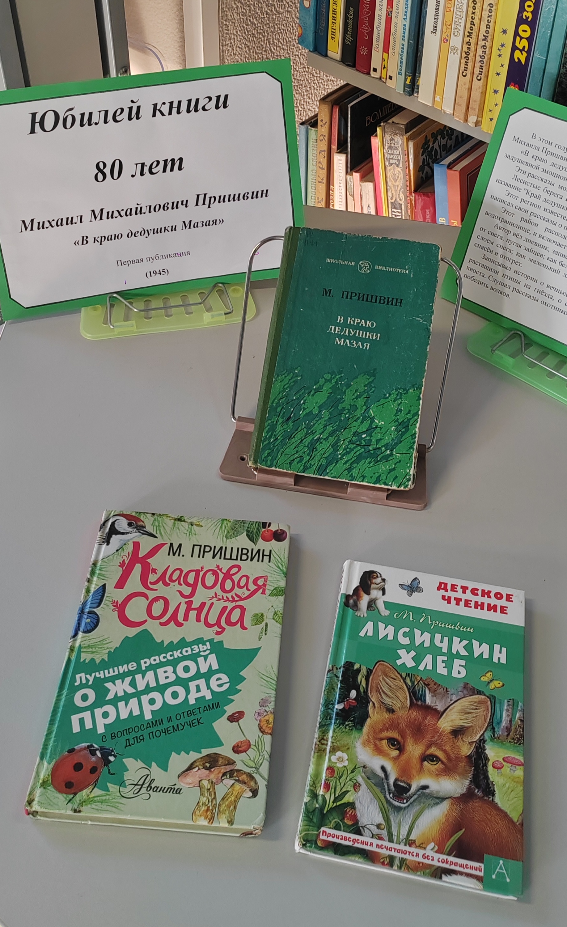 В этом году исполняется 80 лет книге «В краю дедушки Мазая» Михаила Пришвина! В Детском зале для всех желающих работает книжная выставка, на которой вы сможете найти материалы об истории создания произведения, познакомиться с самой книгой, а также взять другие интересные рассказы о природе!