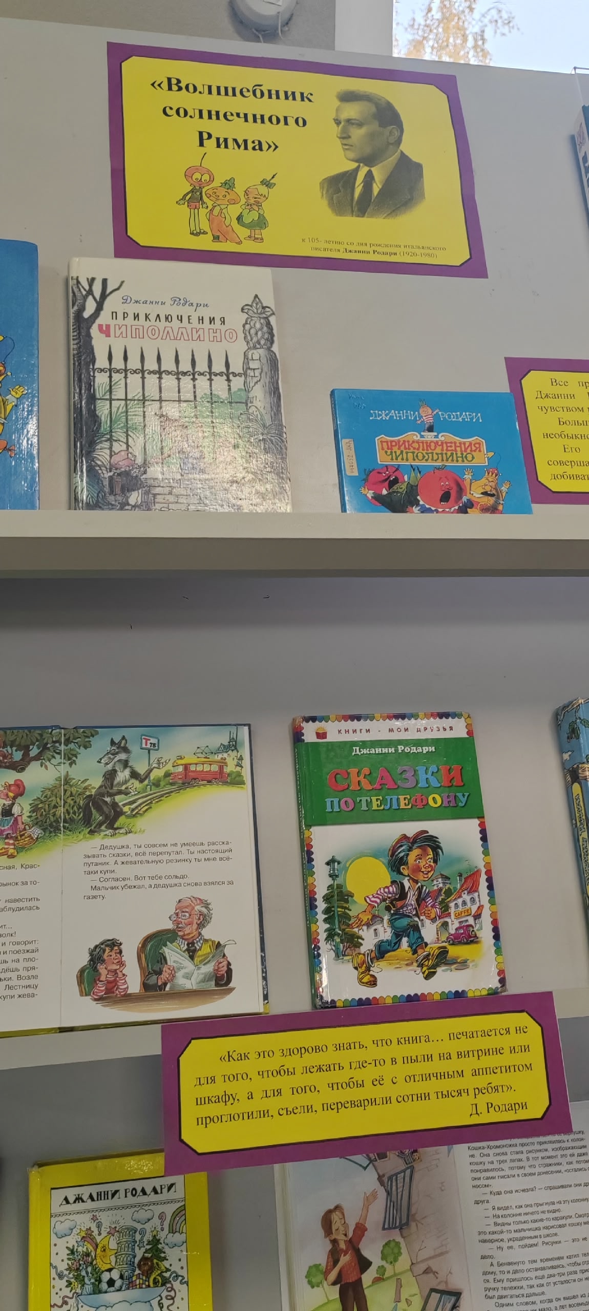 В Детском зале Герценки для детей и их родителей открыта книжно-иллюстративная выставка, посвященная известному итальянскому писателю Джани Родари. Здесь вы найдете самые интересные сказки и истории, такие как: «Приключения Чиполлино», «Путешествия Голубой стрелы», «Сказки по телефону», «Торт с неба», «Джельсомино в стране лгунов» и многие другие!