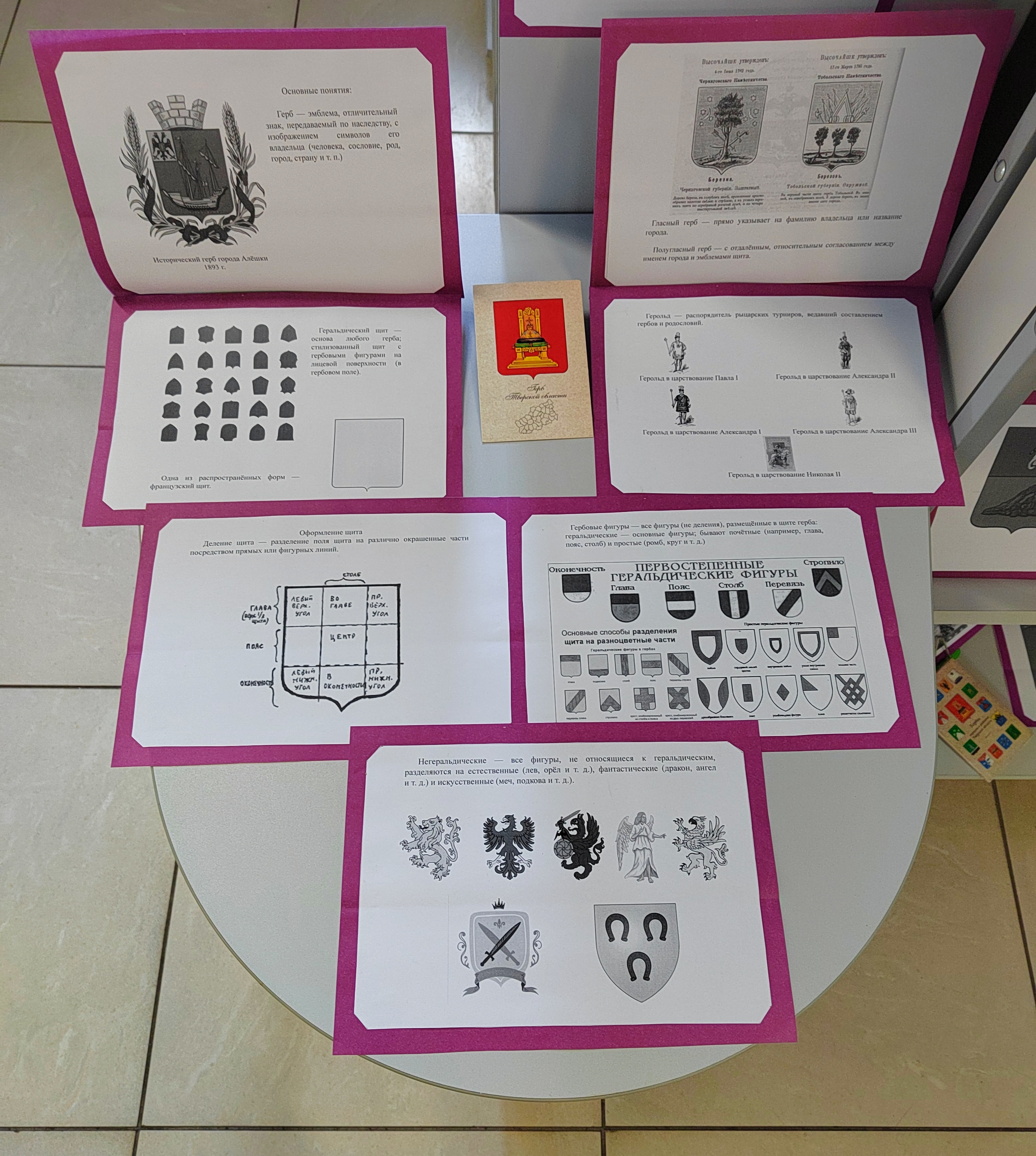 На выставке представлены изображения гербов таких городов, как Торжок, Весьегонск, Вышний Волочёк, Осташков, Ржев и другие. Вы прочитаете об истории их возникновения, значении и некоторых интересных фактах.